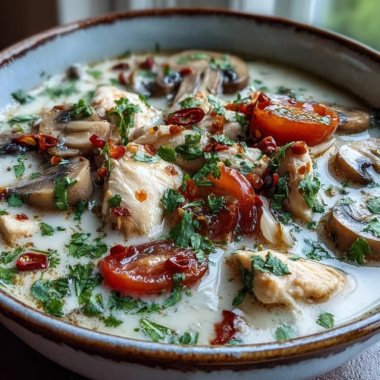 Save The first time I had Tom Kha Gai at a tiny Thai restaurant in Chicago, I actually drank the bowl clean and asked for more broth. The server laughed and told me that is the highest compliment you can pay a Thai cook. I went home determined to recreate that magic in my own kitchen, and after many batches of too-coconutty or over-spiced attempts, I finally found the balance that makes this soup sing.