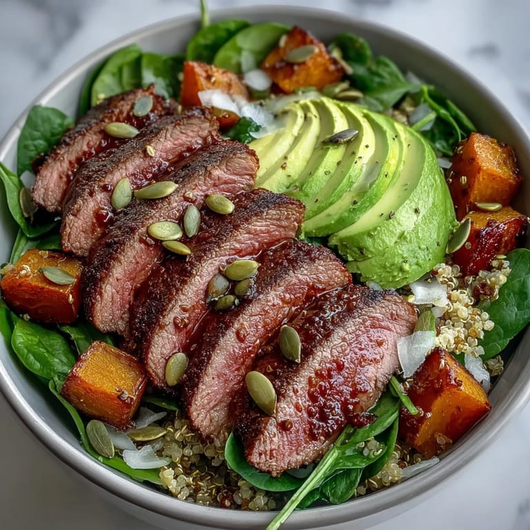 Save My neighbor appeared at my door one October evening clutching a butternut squash she couldn't figure out how to use. We ended up slicing it into cubes, roasting it with cumin, and piling it into bowls with leftover steak from my fridge. That improvised dinner turned into this recipe, a meal I now make whenever I want something hearty but still bright enough to feel like I'm doing my body a favor. The smell of caramelized squash and garlic still reminds me of her laugh when she tasted it and said, "Why don't we cook together more often?"