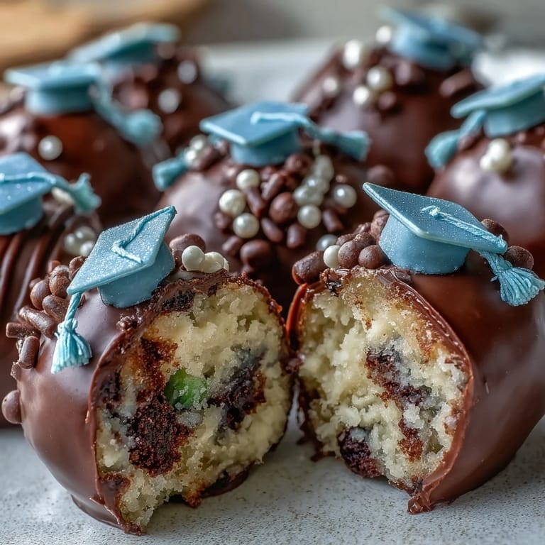 Save The sound of candy melts clinking in a glass bowl always sends a quirky thrill through my kitchen. Last June, this recipe was born out of pure necessity my niece declared she wanted cake in the shape of 'graduation on a stick' for her party, in colors impossible to find at the store. The resulting cake pops ended up being a centerpiece and, frankly, a conversation starter that rivaled the graduate herself. The colors, the sheen, that slightly mischievous aroma of chocolate mingling with sugar sprinkles—it all told a story of celebration, and a lot of quick hands wanting to 'help.' There's something joyfully methodical about shaping sweets with a crowd gathered and anticipation rising.