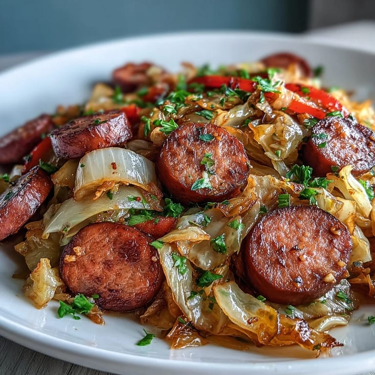 Save There was a Tuesday night when the fridge looked bare and I had half a cabbage rolling around in the crisper drawer. I grabbed it, found some sausage in the freezer, and threw them both into a skillet without much of a plan. The smell that filled the kitchen—smoky, sweet, almost caramelized—made my neighbor knock on the door to ask what I was cooking. That's how this dish earned its place in my weekly rotation.